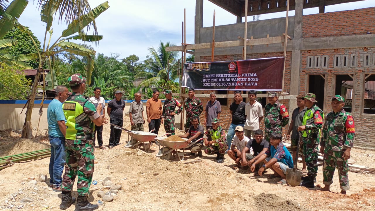 Nagan Raya – TNI-AD Bersama dengan rakyat melaksanakan gotong royong atau kerja bakti Tempat ibadah (mesjid) biar bersih dan nyaman, Anggota posramil Tadu raya bersama dengan masyarakat merata pasir di sekitar lingkungan masjid dalam rangka memperingati HUT TNI Ke-80 di Alue gani Kecamatan Tadu raya, Kabupaten Nagan Raya, Jumat (19/09/2025).