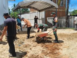 Menyambut HUT TNI Ke-80, Anggota posramil Tadu raya Karya Bakti bersama masyarakat Lingkungan masjid
