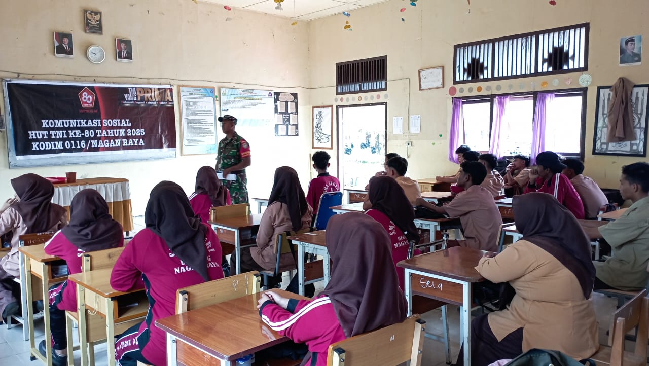 Nagan Raya – Dalam upaya memperkuat rasa cinta tanah air dan menanamkan nilai-nilai kebangsaan, personil Koramil yang di wakili Serda Susanto, Babinsa Koramil 04 Beutong Kodim 0116/Nagan Raya, memberikan pembekalan Wawasan Kebangsaan (Wasbang) kepada siswa/i SMA 1 Beutong.kecamatan Beutong Kabupaten Nagan Raya.Rabu, 24/09/2025.