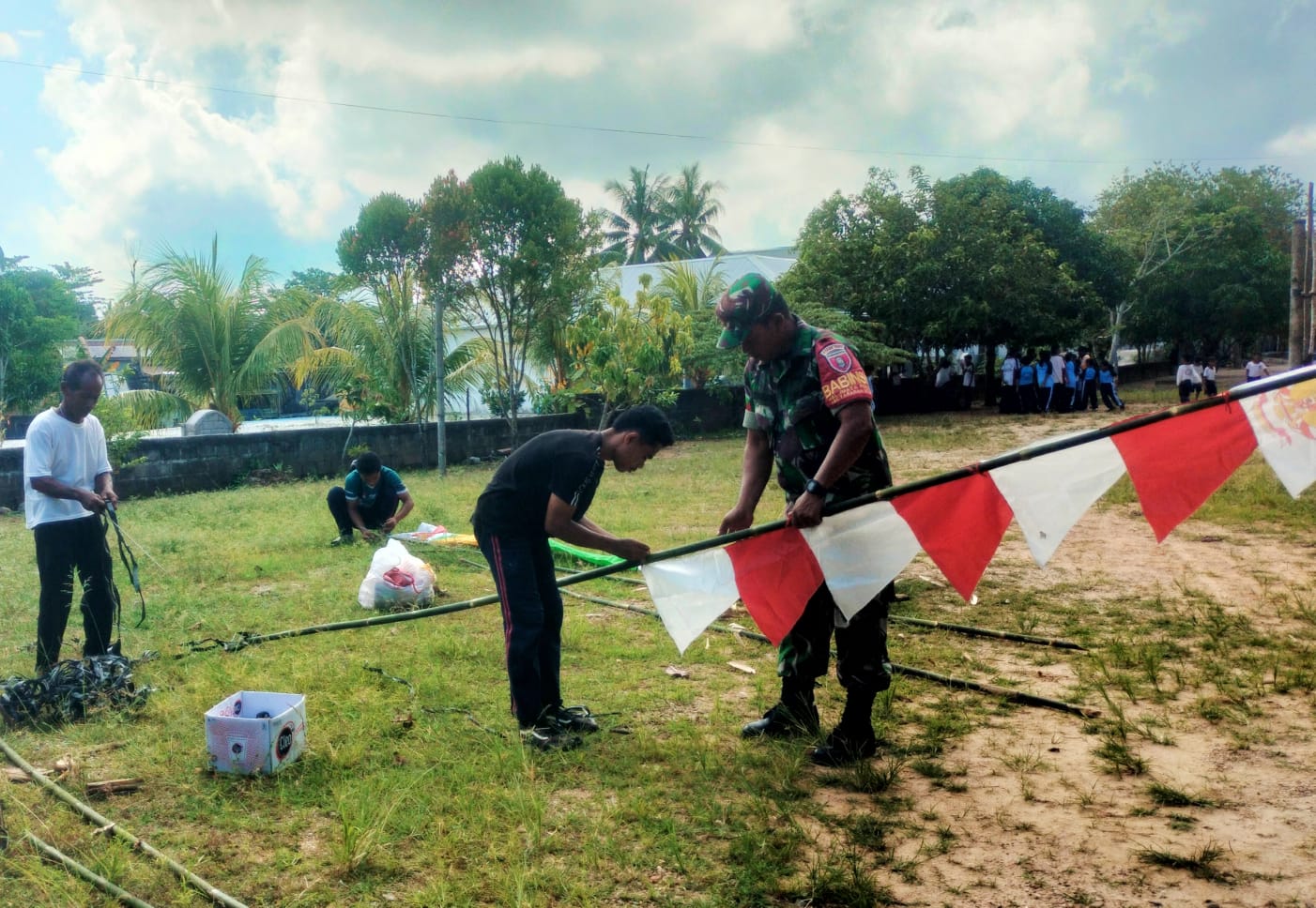 Menyongsong HUT RI Ke – 80 Babinsa Kodim 0907/Trk Ajak Warga Kibarkan Bendera Merah Putih