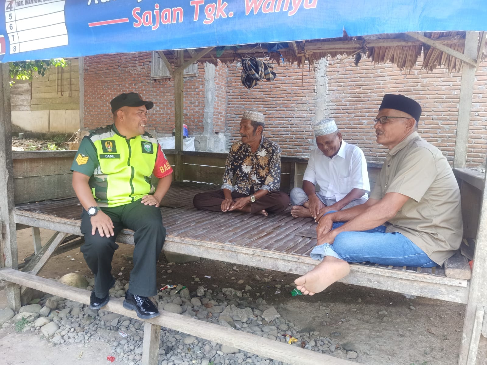Pidie, – Babinsa Koramil 15/Tiro Kodim 0102/Pidie, Serma Ramadhan Nil, melaksanakan kegiatan Komunikasi Sosial (Komsos) bersama masyarakat di Gampong Peunandok, Kecamatan Tiro, Kabupaten Pidie. Kamis (4/09/2025)