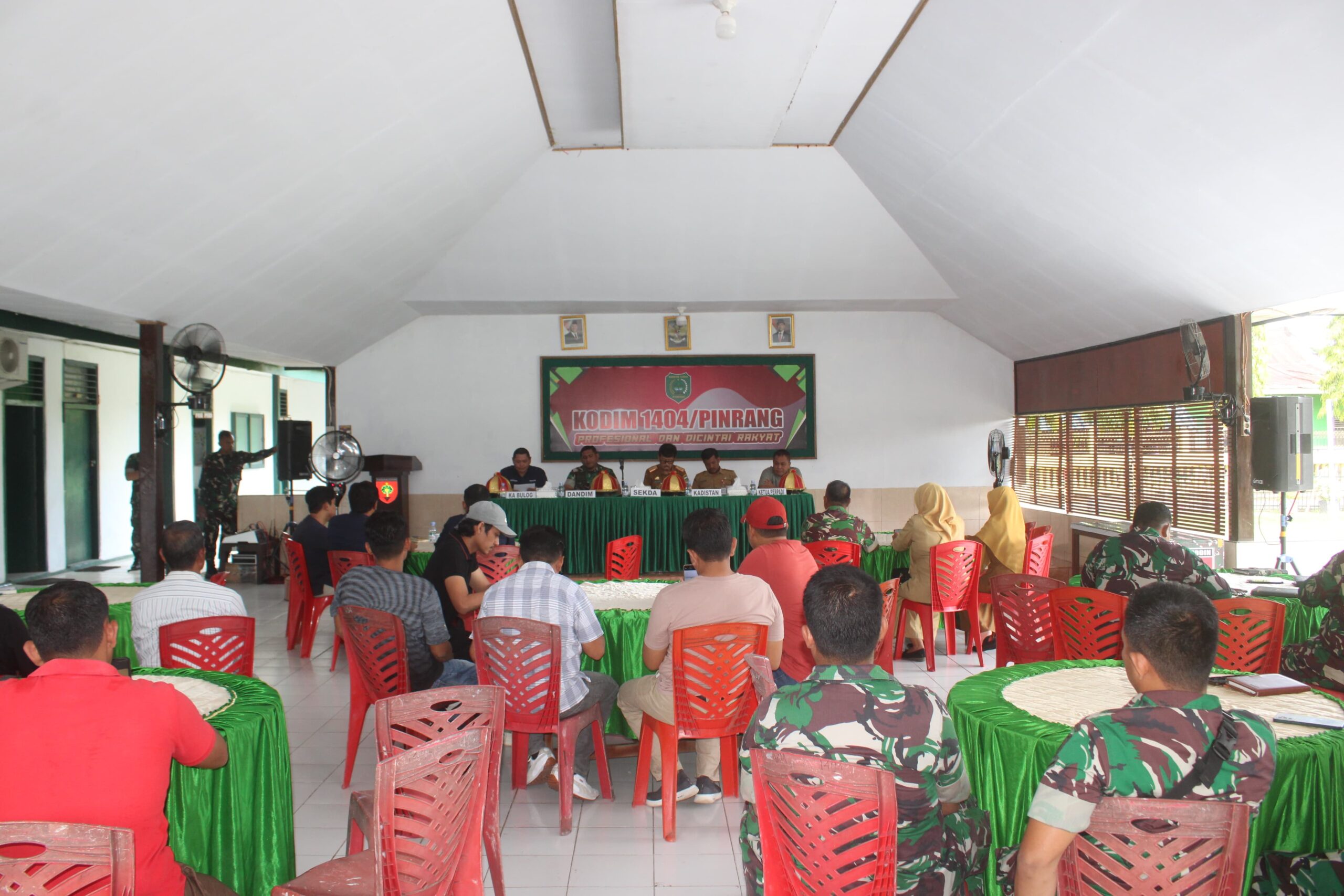 Pinrang_ Dandim 1404/Pinrang Letkol Inf Abdullah Mahua, S.H.I, M.M., mengundang Bulog, Pemda serta pihak-pihak terkait guna optimalisasi serapan gabah (Sergab) dan beras di wilayah Kabupaten Pinrang, Rabu (09/04/2025).