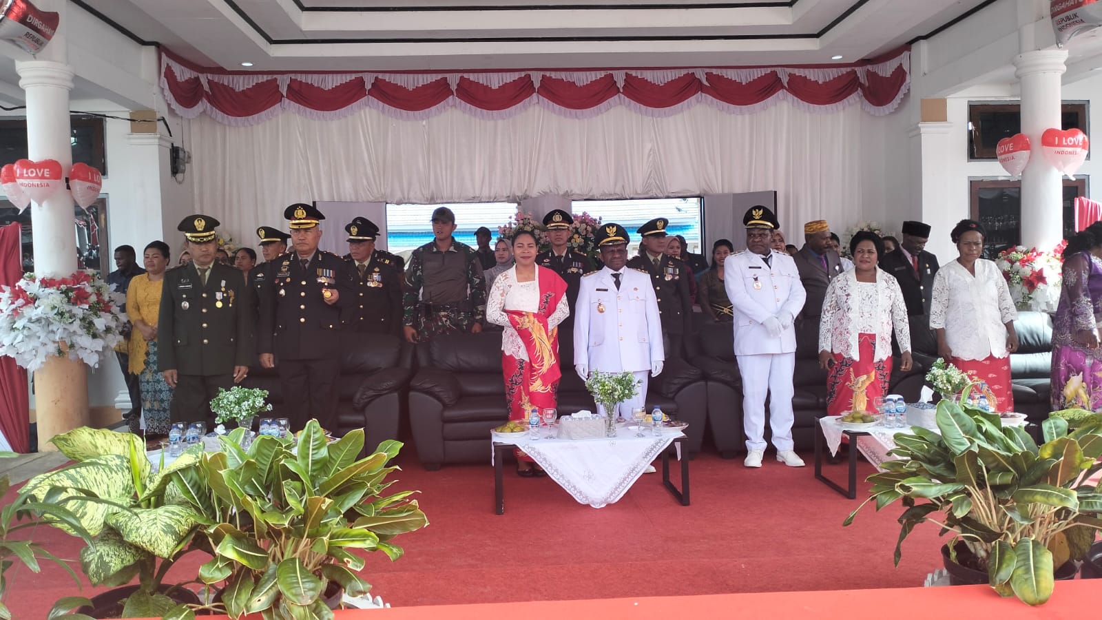 Deiyai – Pabung 1703/Deiyai Mayor Czi Jarman Dabang menghadiri jalannya Upacara Penaikan Bendera Merah Putih HUT Kemerdekaan RI Ke-80 Tahun 2025. Di lapangan halaman kantor bupati kabupaten Deiyai, Distrik Tigi, kabupaten Deiyai, Provinsi Papua Tengah, Minggu (17/08/2025).