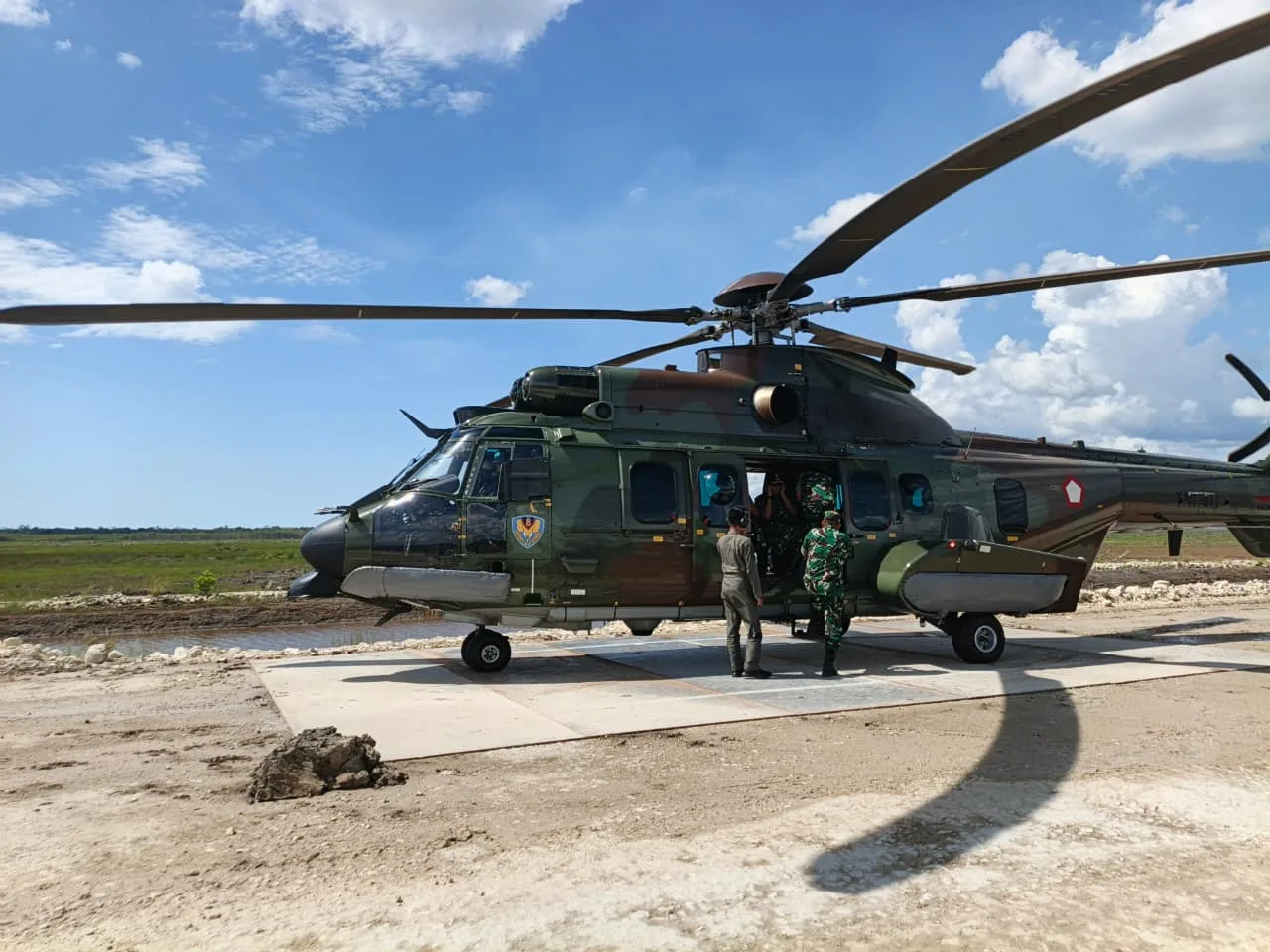 Setibanya di Bandara Mina Wanam menggunakan Helikopter Caracal H-225M, Sekjen Kemhan bersama rombongan disambut unsur TNI–Polri dan pemerintah kampung. Dari bandara, rombongan bergerak menuju Poskotis Kodam XXIV/MT untuk menerima paparan Pangdam mengenai progres kesiapan pembangunan Yonif TP 861/MT, termasuk dukungan infrastruktur yang sedang dikerjakan.