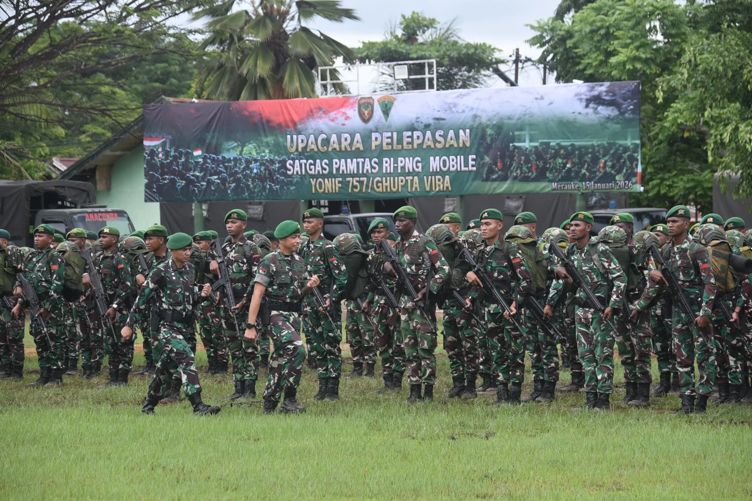 Dengan dilaksanakannya upacara pelepasan ini, Satgas Yonif 757/GV dinyatakan siap mengikuti Latihan Pratugas sebagai bagian dari kesiapan penugasan Operasi Pamtas RI–PNG Mobile TA 2026 guna menjaga kedaulatan dan keutuhan wilayah Negara Kesatuan Republik Indonesia.