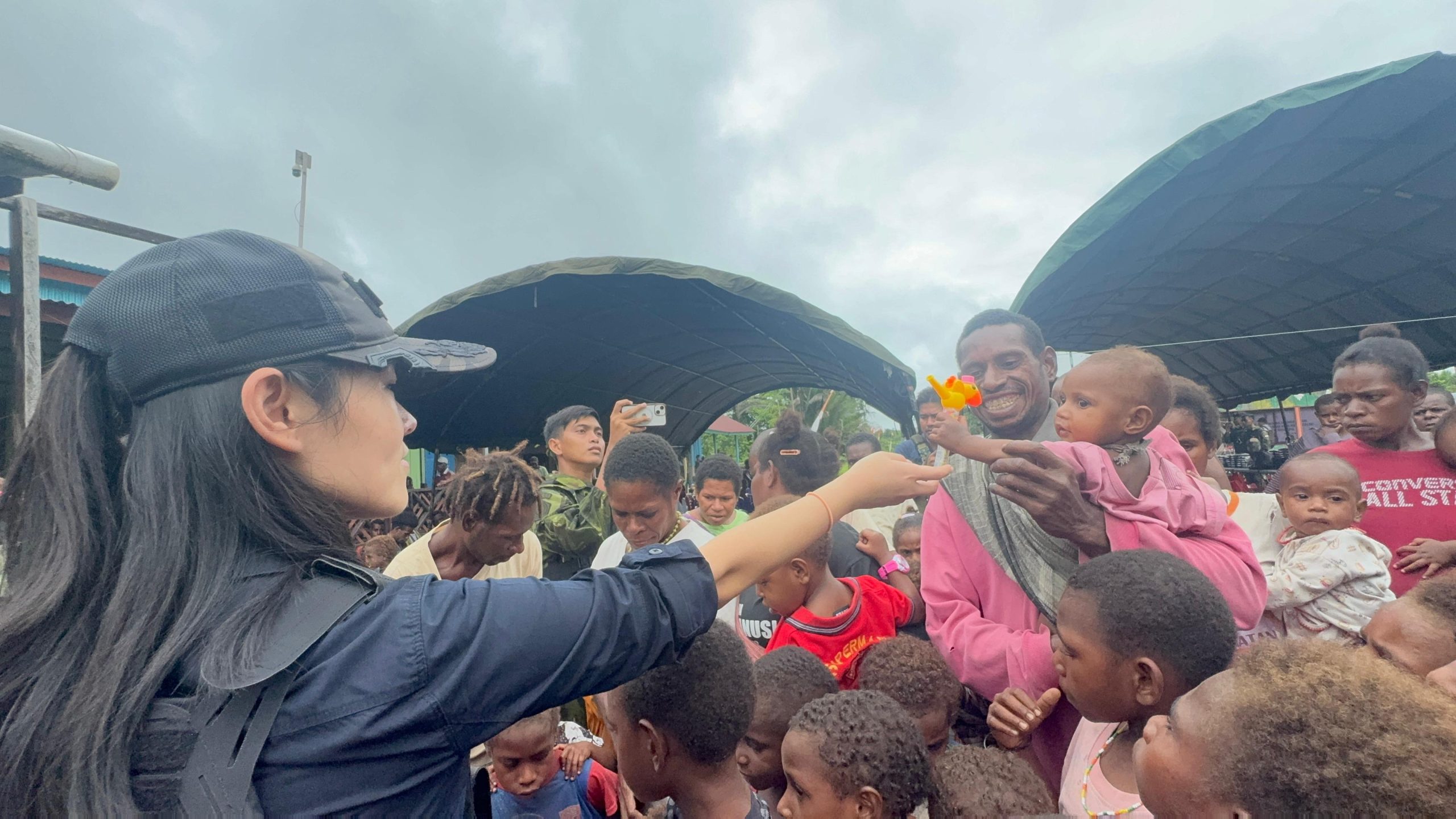 Pada sesi berikutnya, Panglima melanjutkan kegiatan dengan berbincang bersama para tokoh adat dan masyarakat setempat, membahas situasi keamanan dan kondisi sosial masyarakat Kampung Mumugu. Di akhir kegiatan, Panglima juga menyerahkan secara simbolis bingkisan berupa paket makanan dan jam tangan kepada anak-anak sebagai bentuk kepedulian dan perhatian.