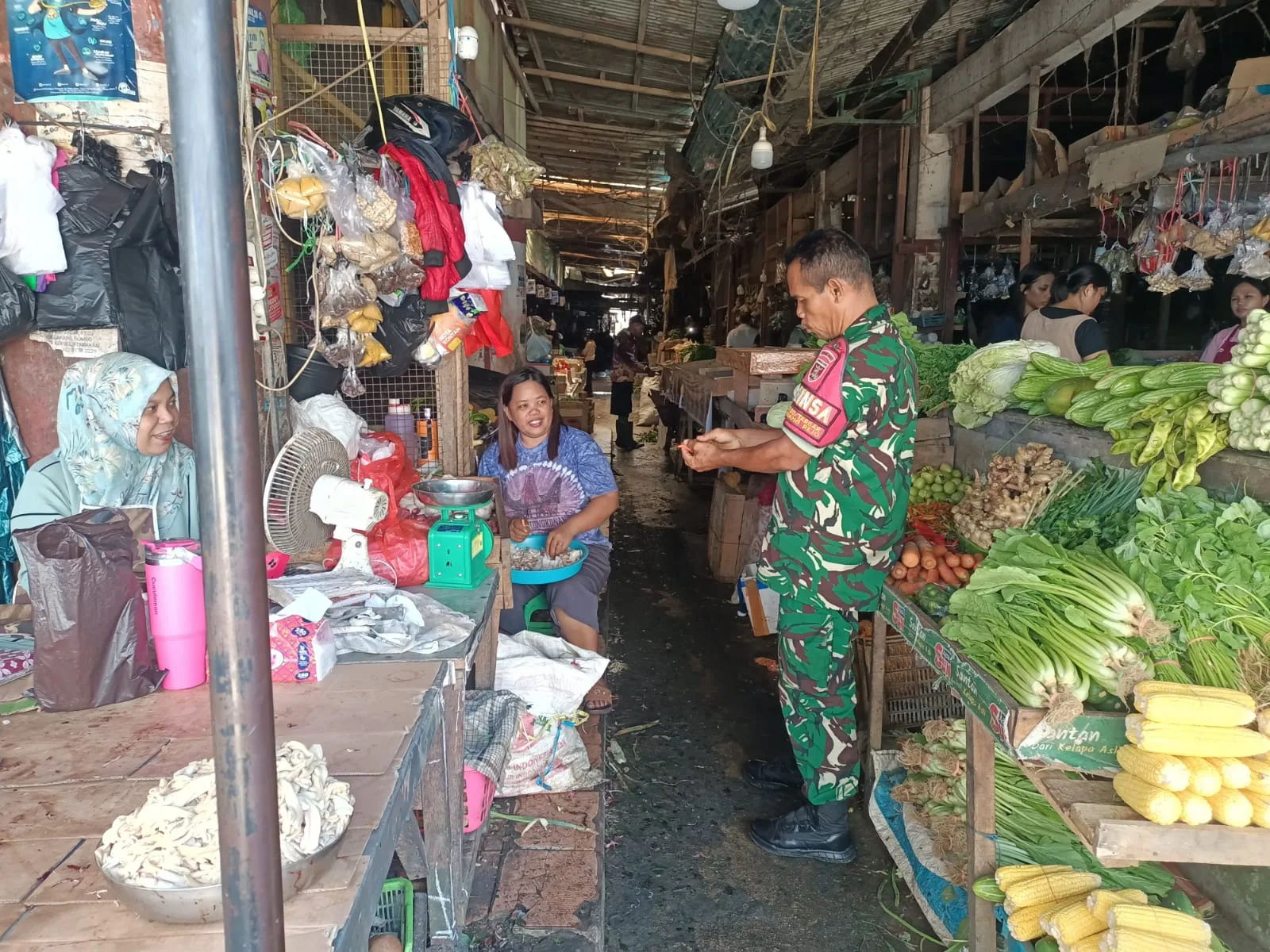 Pantau Aktifitas Pasar,Babinsa Koramil 0907/03 Tarbar Cek Harga Sembako