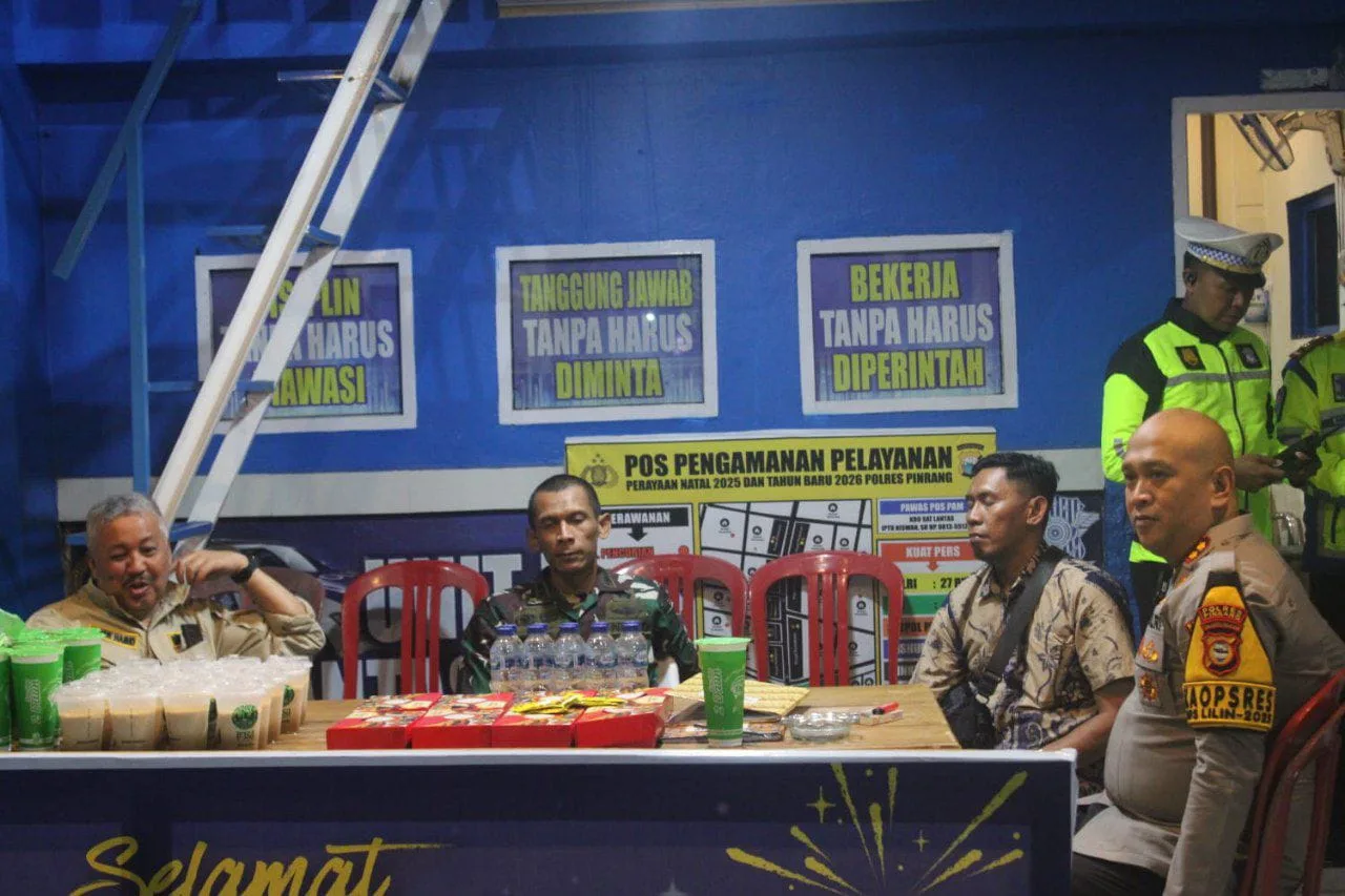 Pinrang_ Guna memastikan situasi keamanan dan ketertiban masyarakat tetap aman dan kondusif selama perayaan Natal 2024 dan Tahun Baru 2025 (Nataru), Dandim 1404/Pinrang Letkol Czi Imam Subekti, S.E., M. Sc., bersama Kapolres Pinrang AKBP Edy Sabhara Mangga Barani, S.I.K., dan Bupati Pinrang H. Andi Irwan Hamid, S. Sos melaksanakan pengecekan pos pengamanan Nataru di wilayah Kabupaten Pinrang, Kamis (25/12/2025).