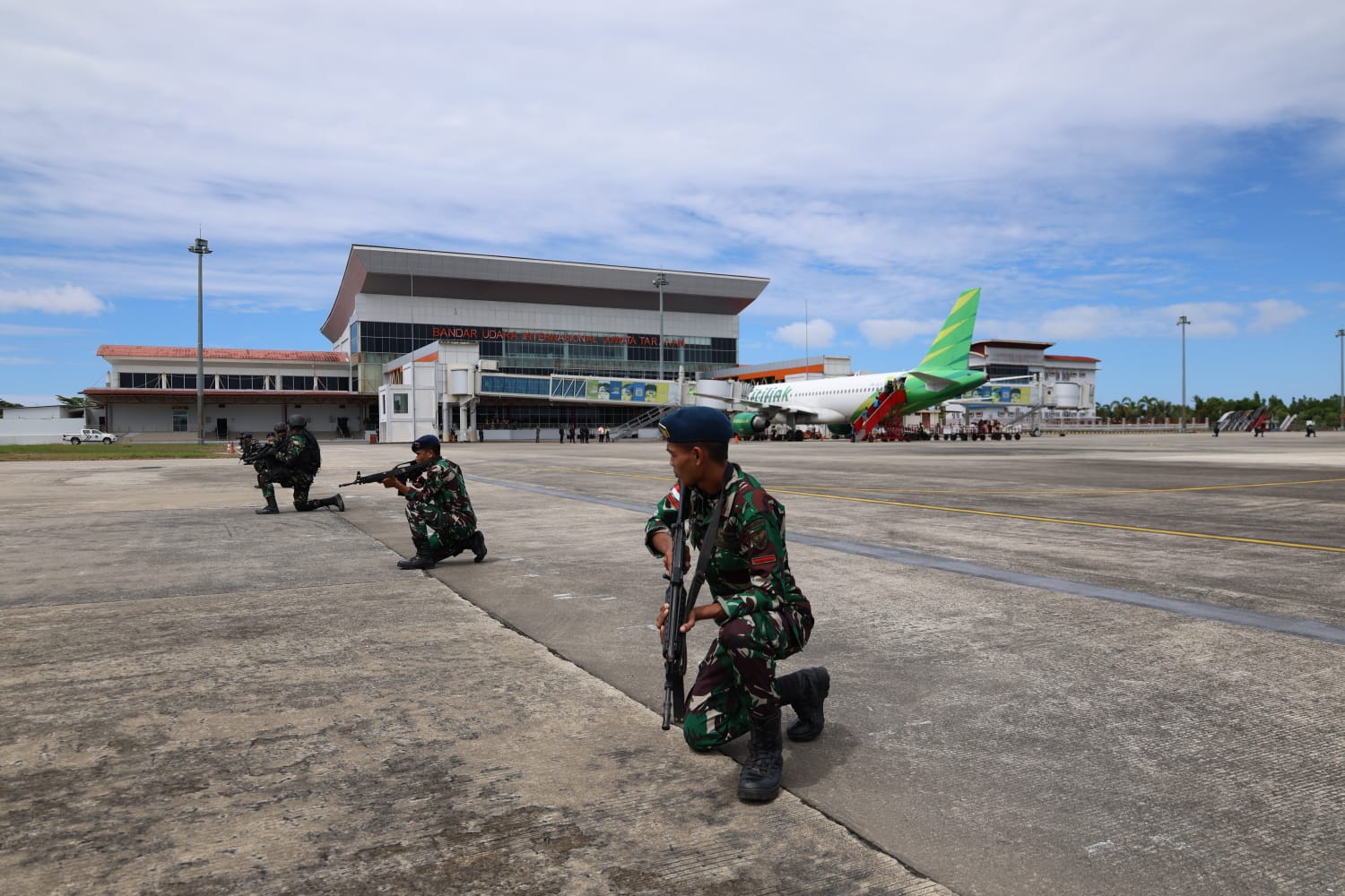 Tarakan – Memastikan kesiapsiagaan personil dalam menghadapi ancaman di objek Vital. Jajaran TNI di lingkup Kodam VI/Mulawarman bersama Lanud Anang Busra menggelar latihan dengan skenario ancaman bom pesawat yang mendarat di Bandara Juwata Tarakan, Kamis (3/7/2025).