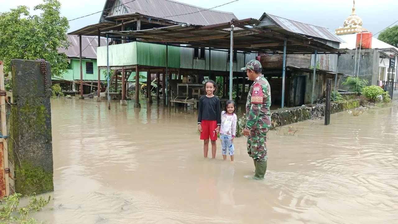 KODIM 1405/PAREPARE – Babinsa 1405-04/Soppeng Riaja Serda Darwis melaksanakan kegiatan pemantauan dan pengecekan kondisi terkini luapan air Sungai Balusu yang menggenangi sejumlah wilayah, yang bertempat Desa Balusu, Kecamatan Balusu, Kabupaten Barru