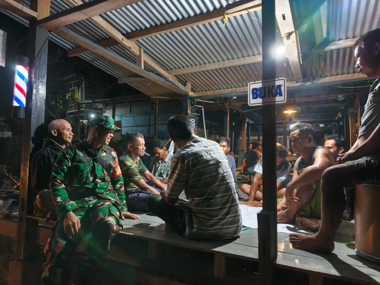 Kegiatan patroli wilayah sekaligus dimanfaatkan untuk melakukan komsos dengan anak muda yang sedang melaksanakan ronda malam di Poskamling untuk memberikan himbauan agar tetap menjaga kamtibmas dan selalu koordinasi dengan Babinsa apabila ada gangguan kamtibmas.
