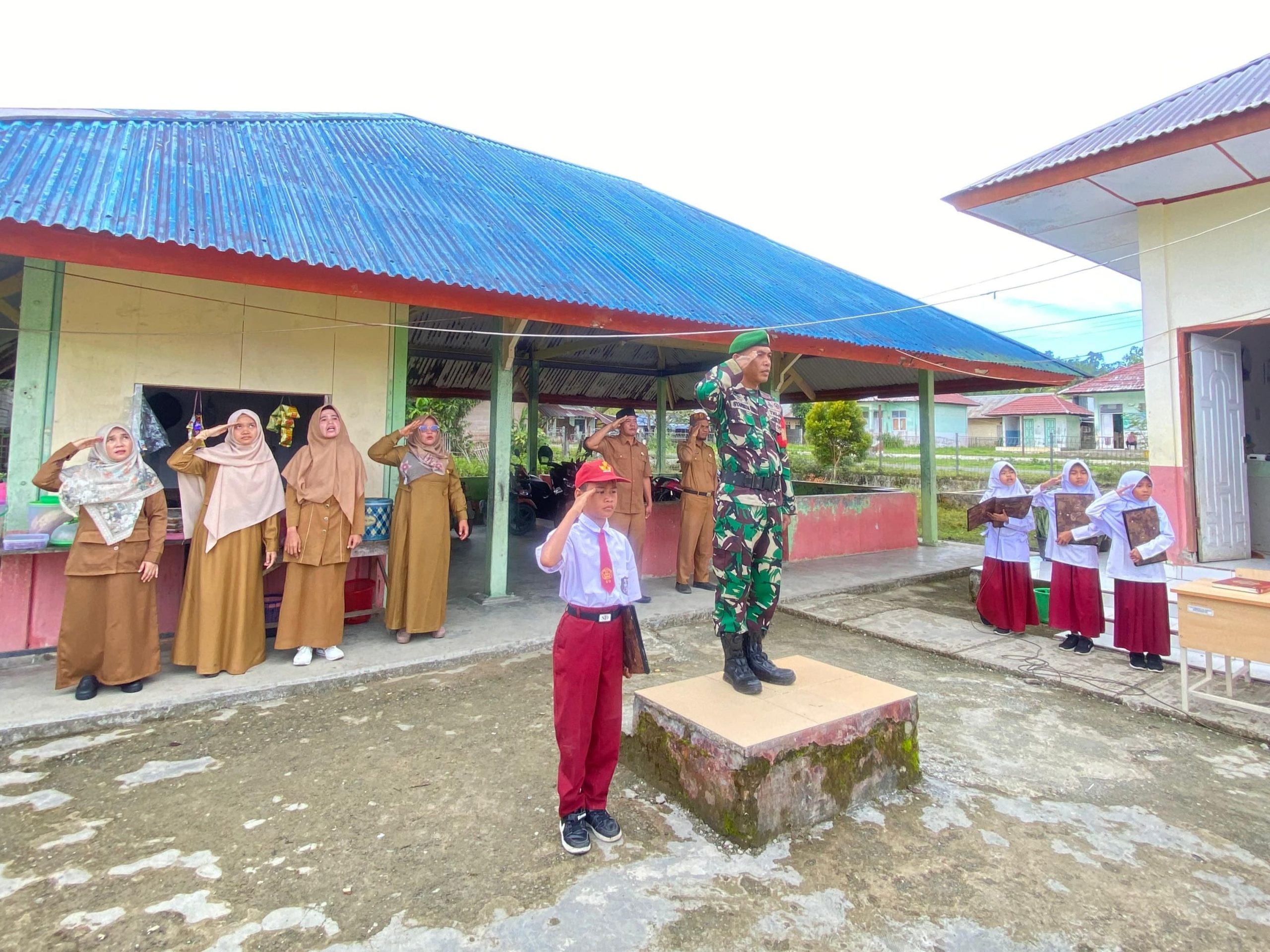 Babinsa Koramil 01/Simeulue Timur, Serda Syafrizal Menjadi pembina Upacara Bendera Merah Putih Di SD Negeri 15 Simeulue Timur, Kabupaten Simeulue. Senin (28/07/2025).