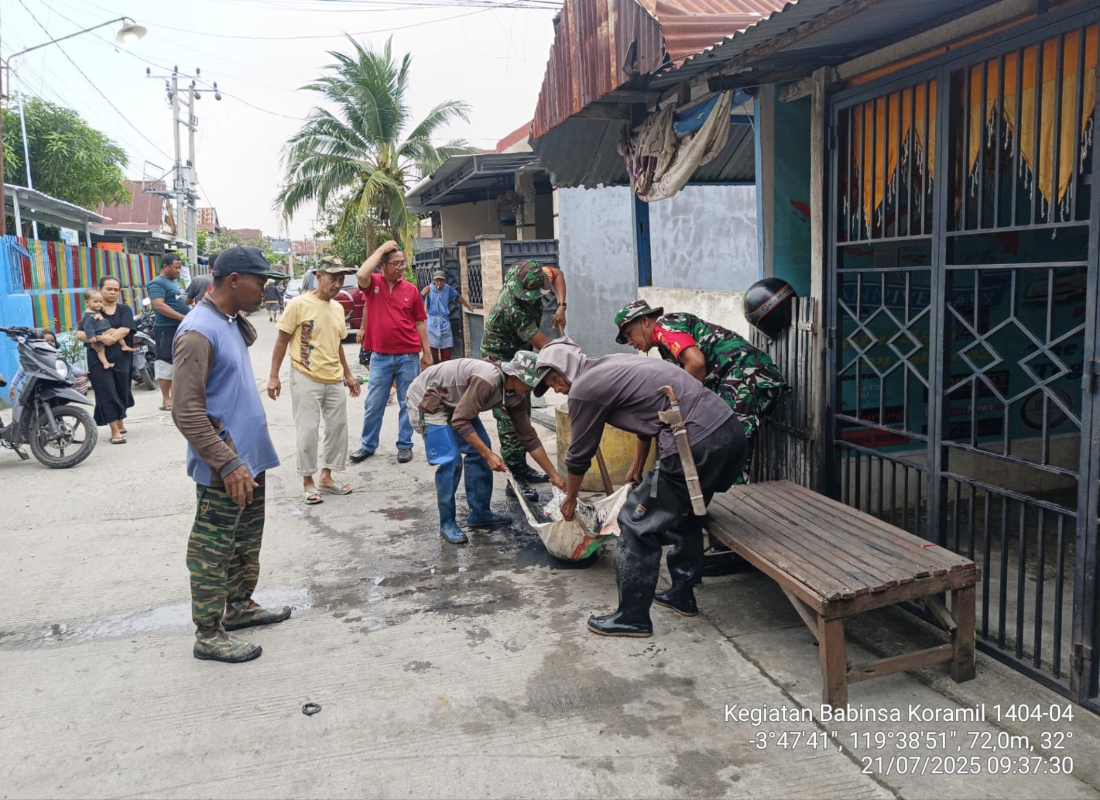 Pinrang_ Upaya meningkatkan kebersihan Lingkungan, Koramil-04/Paleteang Kodim 1404/Pinrang bersama warga melaksanakan kerja bakti pembersihan saluran air di Lingkungan Jaya Barat Kelurahan Jaya Kecamatan Watang Sawitto Kabupaten Pinrang, Senin (21/07/2025).