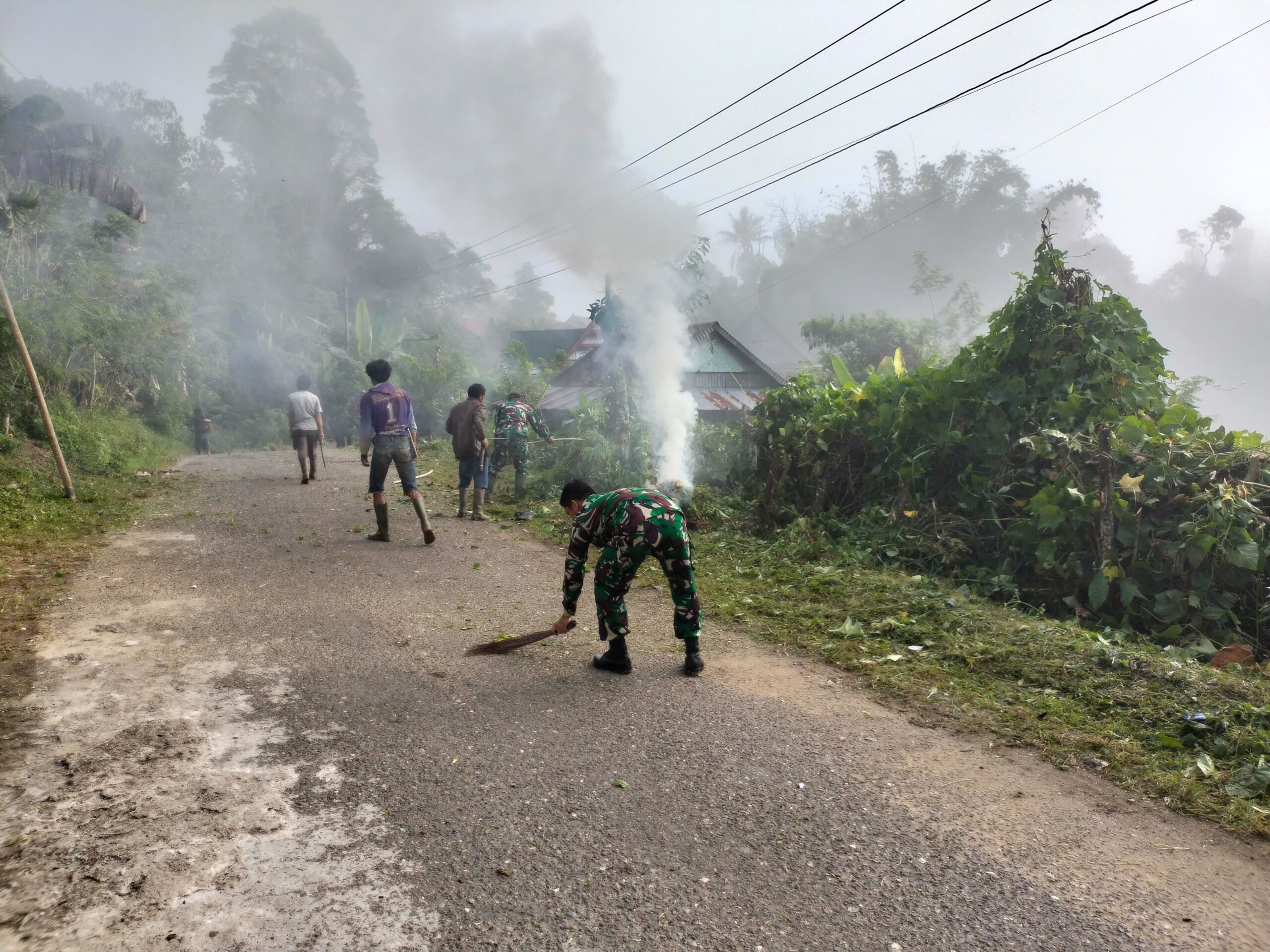 Pada kesempatan tersebut Pelda Yudin Djoni melaksanakan gotong-royong bersama masyarakat membersihkan sampah dan rumput liar di pinggir badan jalan di wilayah binaan tersebut, kondisi tersebut mendorong Babinsa mengajak masyarakat untuk bergotong royong guna melaksanakan pembersihan rumput dan sampah sehingga nantinya membuat kondisi jalan menjadi kelihatan bersih dan terpelihara.