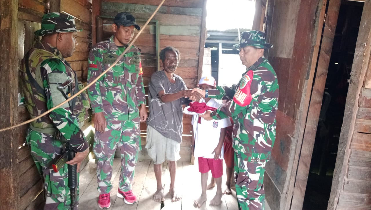 Bibida ~ Danramil 1703-01/Enarotali, Kapten Inf Eko Warsito bersama Babinsa Kampung Kolaitaga, berbagi kebahagiaan dengan memberikan bantuan Seragam Sekolah kepada anak-anak di Kp. Kolaitaga, Distrik Bibida, Kab. Paniai, Prov. Papua Tengah, (08/08/2025).