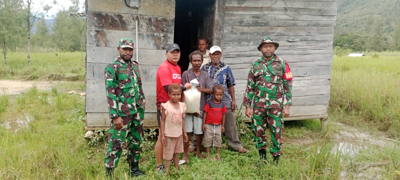 Oleh karena itu sebagai wujud kepedulian terhadap warganya yang kurang mampu, Koramil 1703-01/Enarotali yang dipimpin Langsung Danramil memberikan bantuan sembako dan juga rencananya akan di rehab rumah salah satu warga kampung Bibida Bapak Kris Zonggonau.