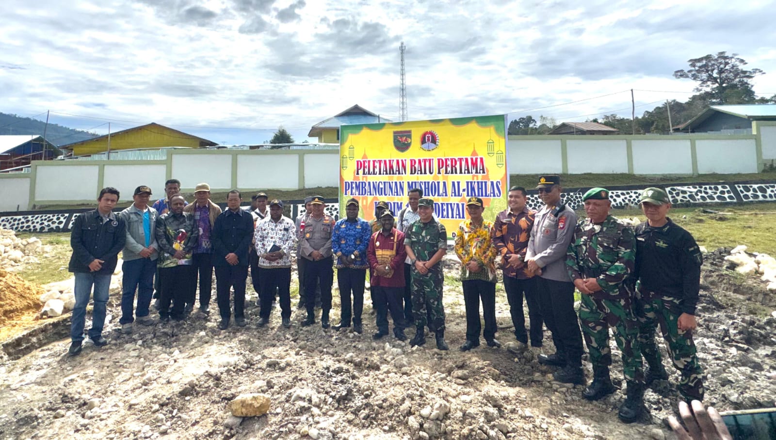 Deiyai – Peletakan Batu Pertama Pembangunan Mushola Al-Iklhas Kodim 1703/Deiyai dan Dilanjutkan Dengan Kegiatan Coffe Morning Bersama Dengan Forkopimda di Makodim 1703/Deiyai, yang dipimpin langsung oleh Letkol Inf Ari Iswoyo Timor, S.Hub.Int (Dandim 1703/Deiyai) dan diikuti sekitar 30 orang yang bertempat di Halaman Makodim 1703/Deiyai Jln. Tigidoo, Kampung Waghete II, Distrik Tigi, Kab. Deiyai, Provinsi Papua Tengah