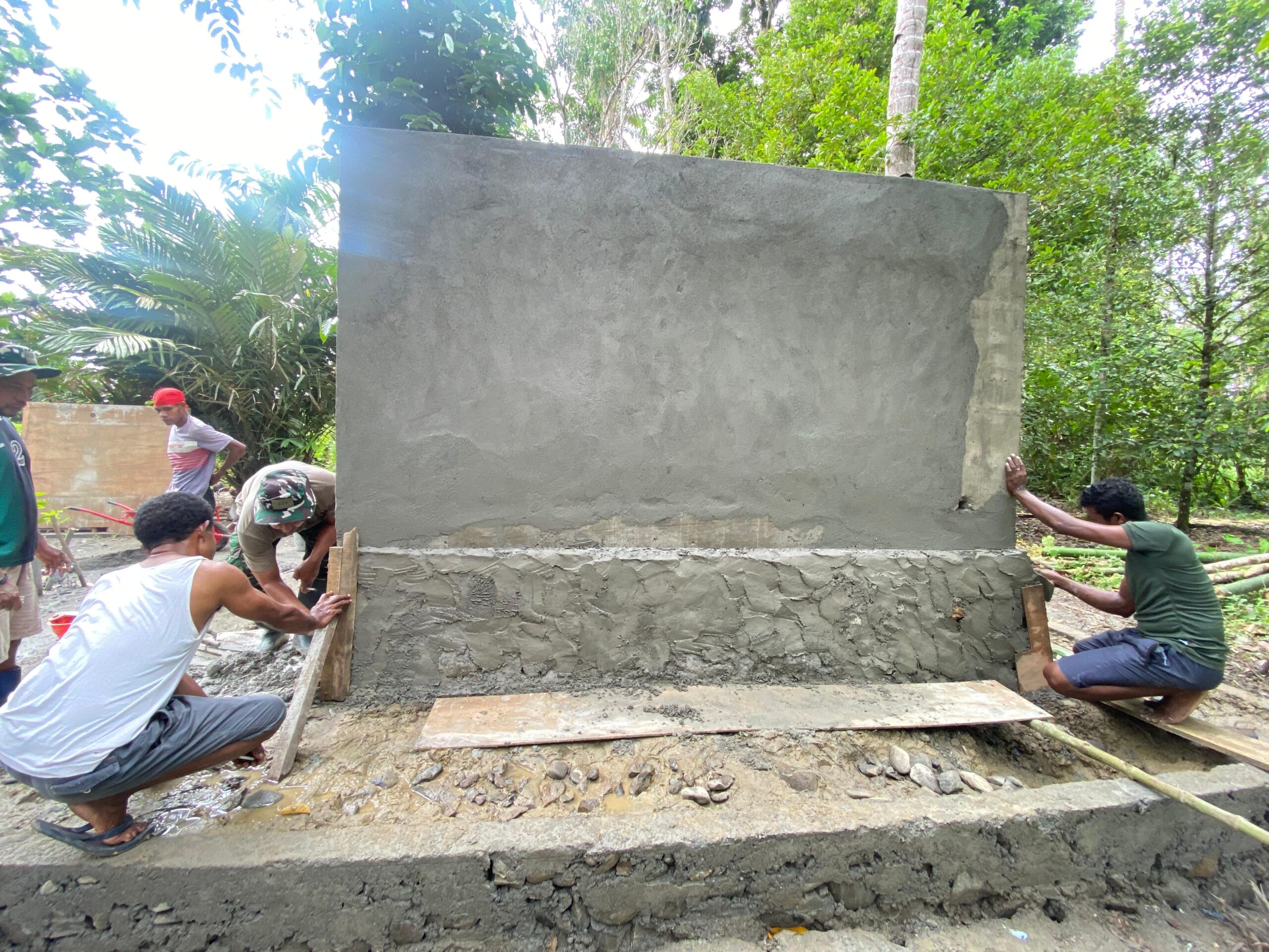 Serka Riy Kepala Tukang mengatakan hari ini pada pembangunan bak penampungan air bersih sudah masuk pada tahap plester dinding bak penampungan.