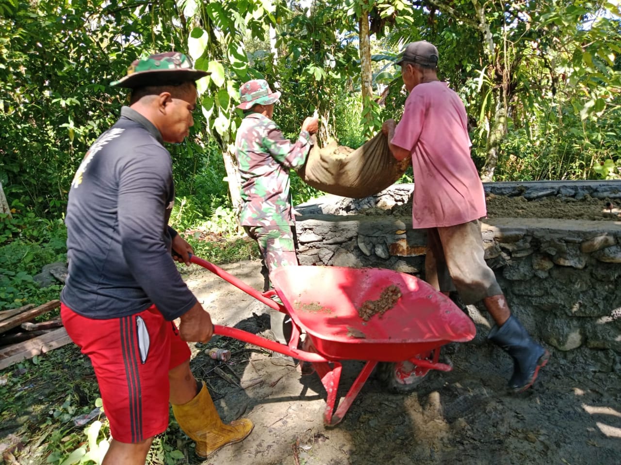 Pembangunan Penampungan Air Bersih Masuk Pada Tahap Penimbunan Pondasi oleh satgas TMMD ke 124 Kodim 1502/Masohi bersama dengan masyarakat yang dilaksanakan di Dsn. Simalow Ds. Sepa Kec. Amahai Kab. Maluku Tengah. Selasa (13/05/2025).