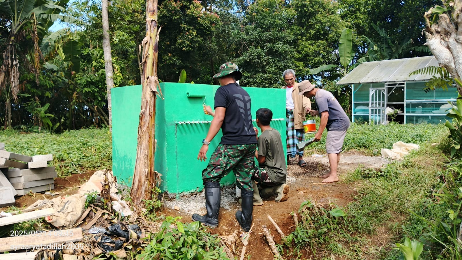 Sukabumi – Pekerjaan Pembuatan Bak Penampungan Air Bersih program TNI Manunggal Membangun Desa (TMMD) ke-124, Kodim 0607/Kota Sukabumi dalam tahap pengecatan(Rabu,14/05/2025)