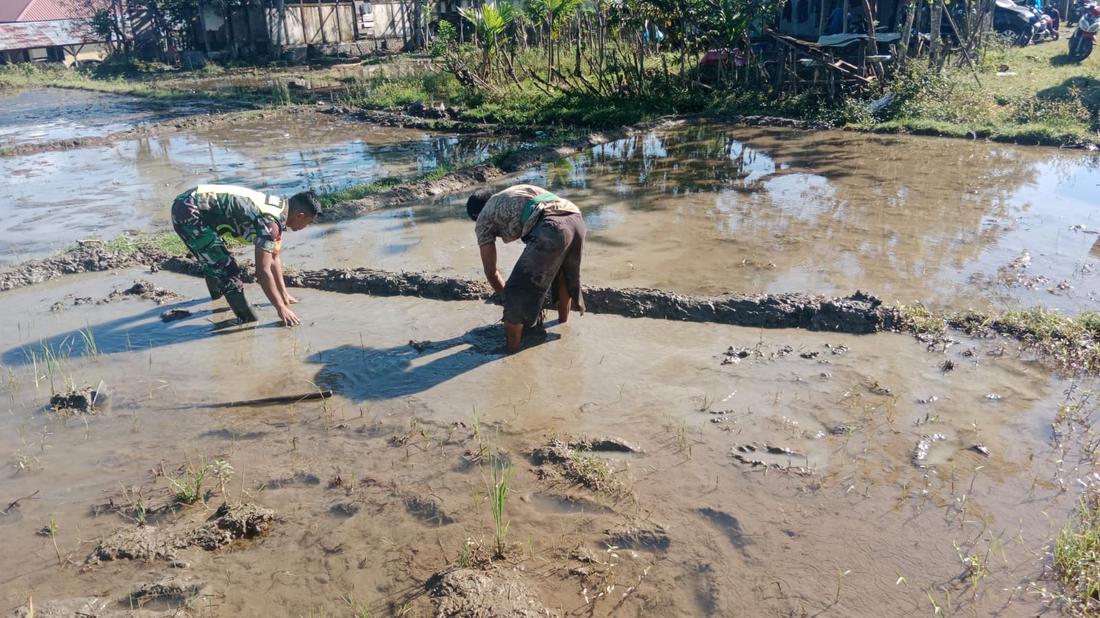 Pidie, – Babinsa Koramil 16/Tangse Kodim 0102/Pidie Sertu Iswadi melaksanakan kegiatan pendampingan kepada petani di wilayah binaannya sebagai bentuk dukungan terhadap program ketahanan pangan nasional