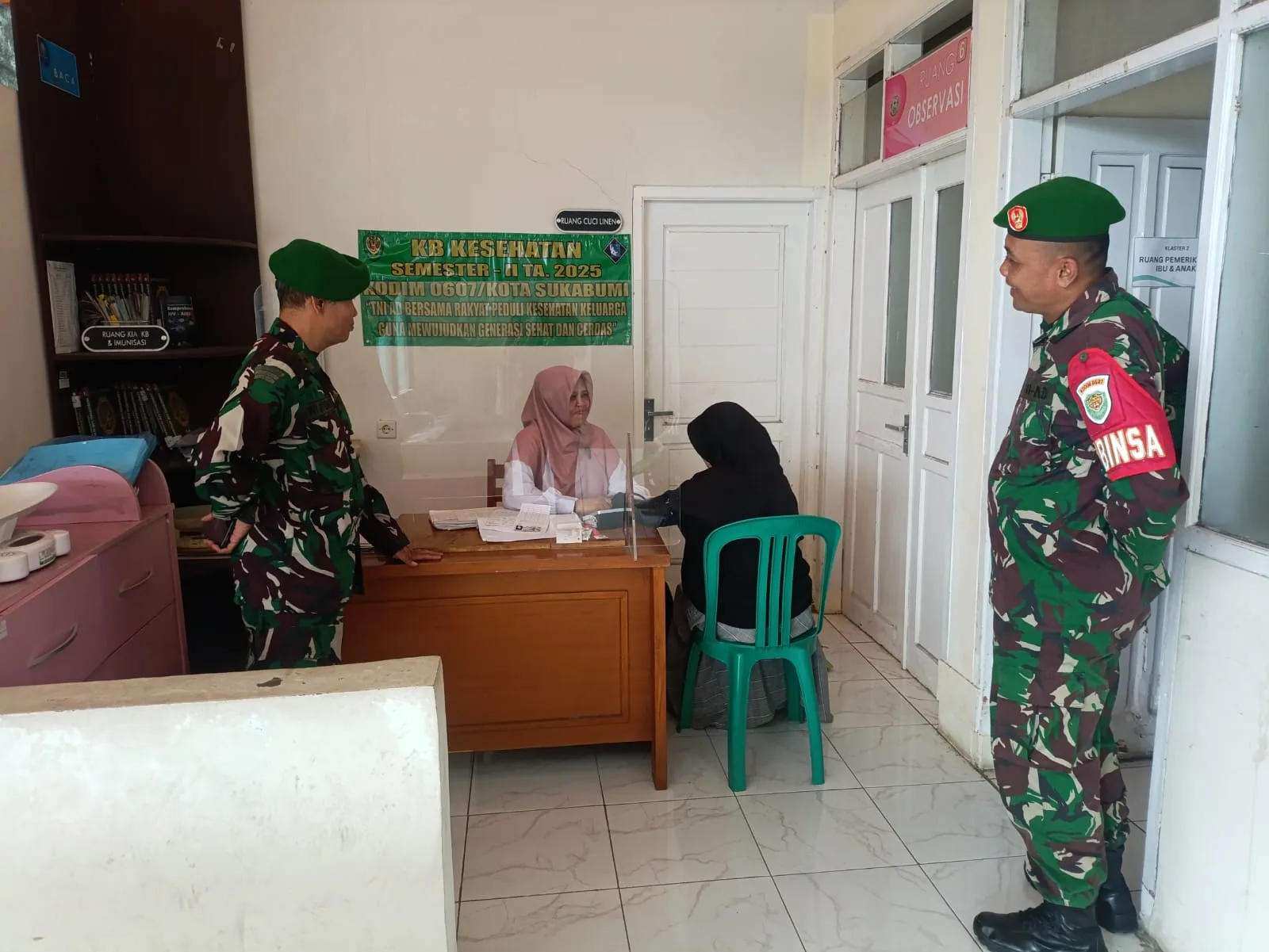 Kota Sukabumi — Bertempat di Puskesmas Sukabumi, Jln. RA Kosasih, Kelurahan Subang Jaya, Kecamatan Cikole, telah dilaksanakan kegiatan Pendampingan Pelayanan KB Kesehatan (KB Kes) oleh Anggota Koramil 0607-04/Sukabumi Utara, Kodim 0607/Kota Sukabumi( Selasa,02/12/2025).