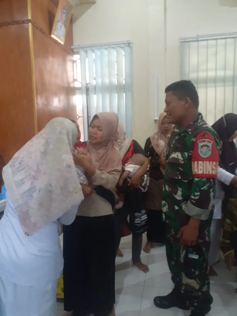 Selasa (14/10/2025) Babinsa Pos ramil tadu raya Kopka Agus zulfikar melaksanakan pendampingan Posyandu yang diselenggarakan oleh bidan desa bersama Kader Posyandu di desa rantau selamat Kecamatan Tadu Raya Kab Nagan Raya.