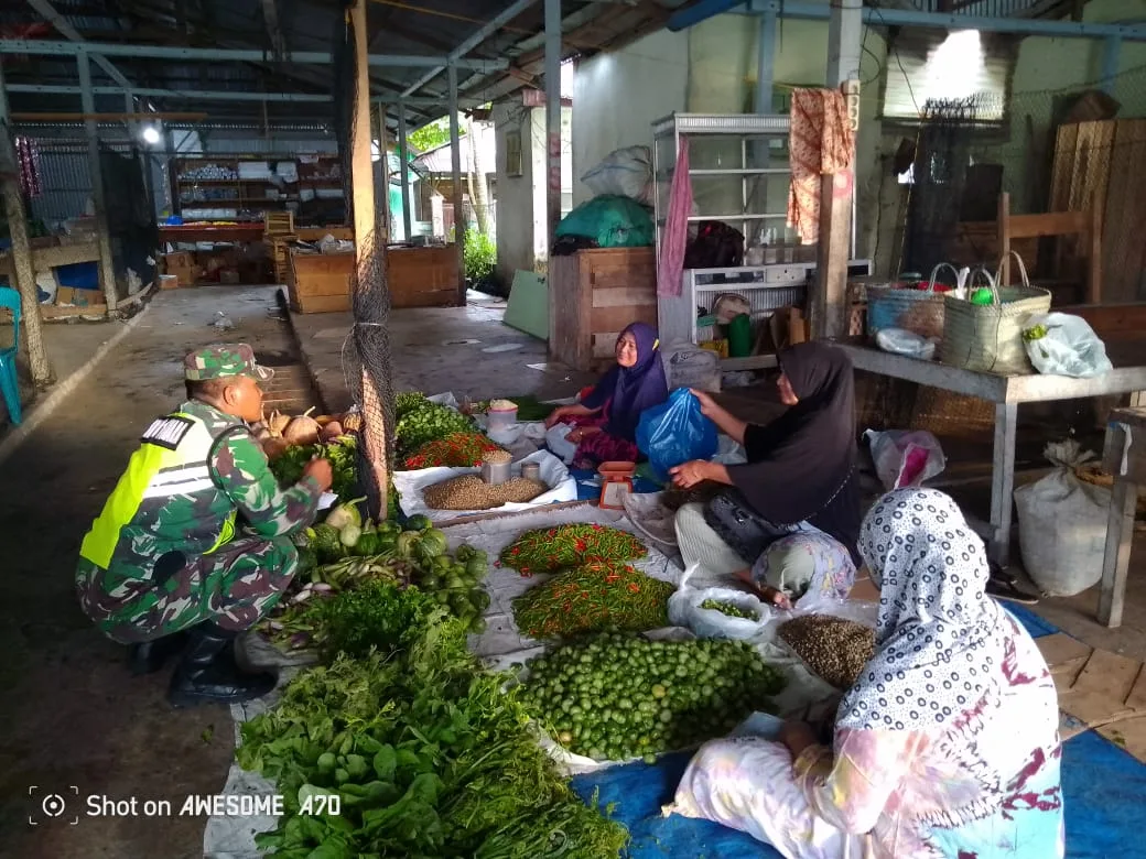 pengamatan tentang penjualan sayuran dan lain sebagainya merupakan salah satu cara yang tepat dan akurat kita bisa memberi masukan yang positif kepada penjual (pedagang )tetap menjalin hubungan sosial antara pembeli dan penjual agar terjalin suasana yang harmonis.ujar Babinsa.