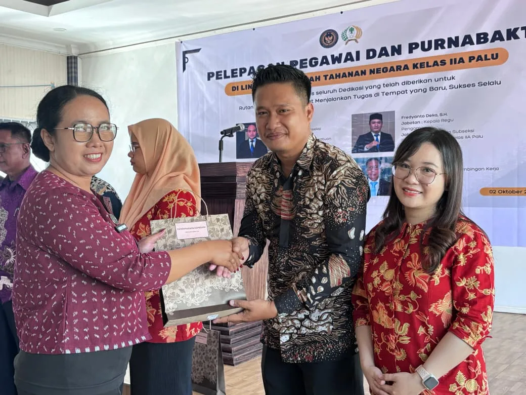 Acara pelepasan ditutup dengan penyerahan cenderamata dan tali asih dari keluarga besar Rutan Palu kepada keempat pegawai yang dilepas. Pemberian kenang-kenangan ini menjadi simbol penghormatan dan ikatan kekeluargaan yang telah terjalin. (Sm)