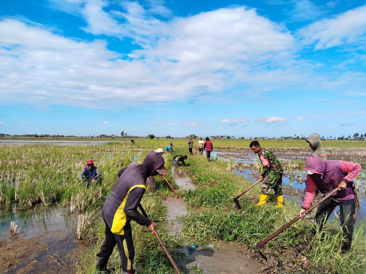 Sertu Rahmat mengatakan kerja bakti ini merupakan salah satu upaya untuk menyukseskan program ketahanan pangan bersama Kelompok Tani dengan membersihkan saluran Irigasi supaya tidak tersumbat yang dapat menyebabkan saluran air kurang lancar.