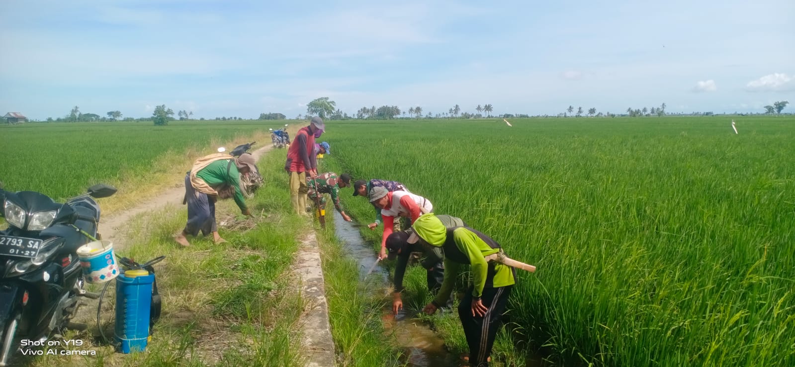 Danramil-02/Mattiro Sompe Kapten Inf Kaharuddin dalam kesempatan tersebut menyampaikan bahwa saat ini padi petani sedang tumbuh dan memerlukan air yang cukup, untuk itu saluran air yang sudah ditumbuhi rumput liar dan mengalami pendangkalan harus dibersihkan agar air lancar mengairi persawahan warga.