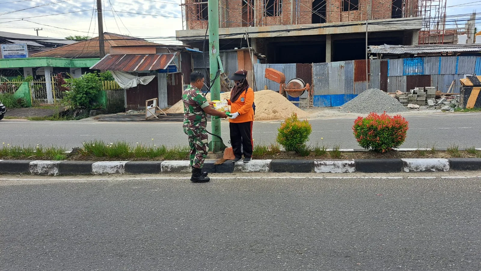 Kegiatan tersebut berlangsung di sepanjang jalan Kelurahan Lingkas Ujung dengan sasaran petugas kebersihan jalan (penyapu jalan) dan Panti Asuhan,Rabu(08/10/2025).