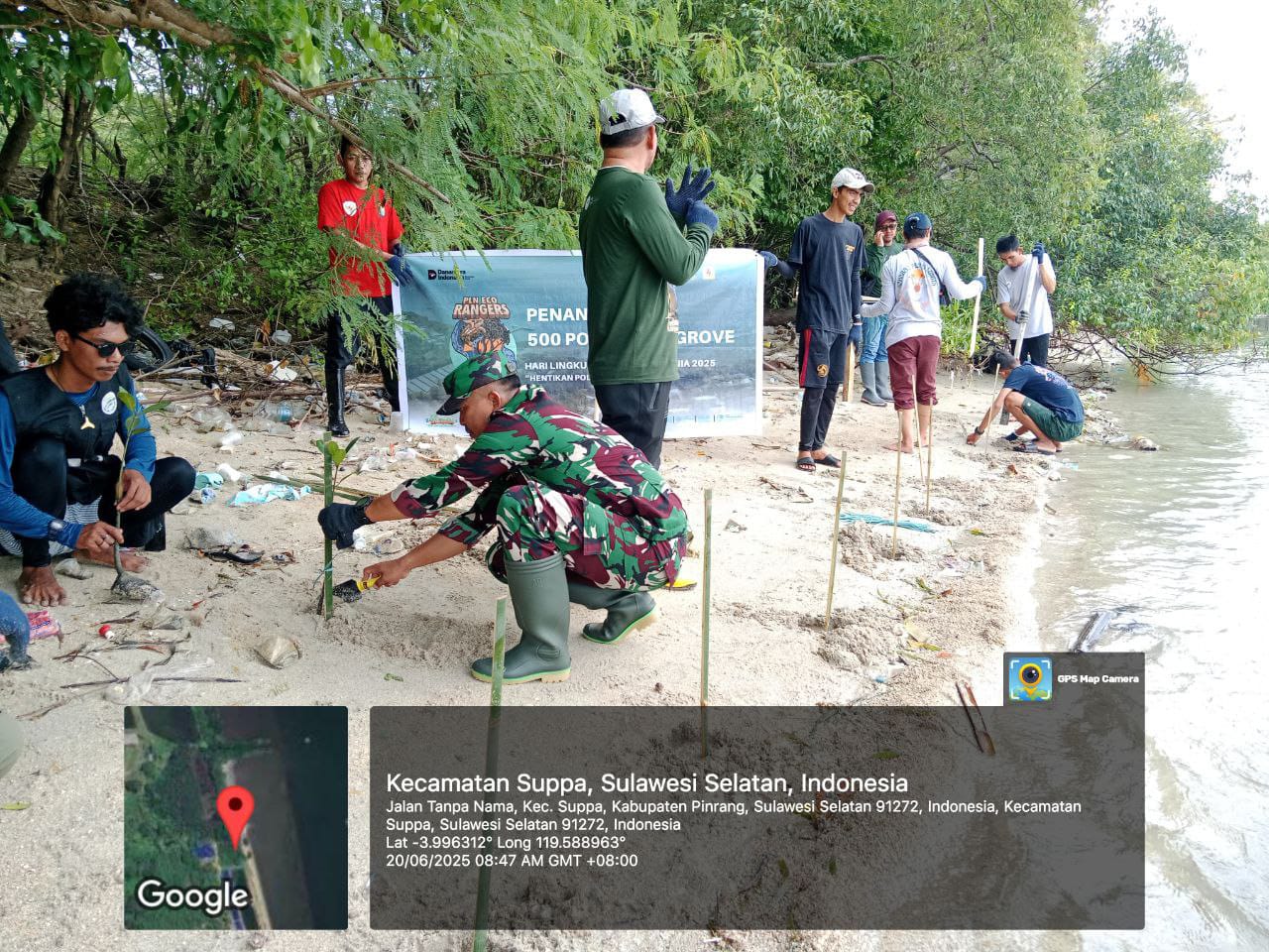 Danramil-01/Suppa Lettu Inf Jamaluddin mengatakan bahwa penanaman bibit pohon mangrove sebanyak 500 pohon dilaksanakan oleh Koramil bekerjasama dengan stakeholder terkait dan masyarakat setempat.