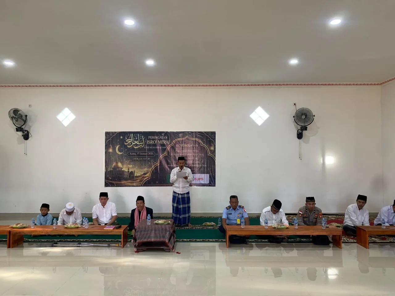 Pen Had. Lanud Harry Hadisoemantri menghadiri kegiatan Istighosah dalam rangka memperingati Isra Mi’raj Nabi Muhammad SAW Tahun 2026 yang dilaksanakan di Masjid Fathul Mu’in Djong, Dusun Jawa, Desa Lembang, Kecamatan Sanggau Ledo, Kabupaten Bengkayang, Sabtu (17/1/2026).