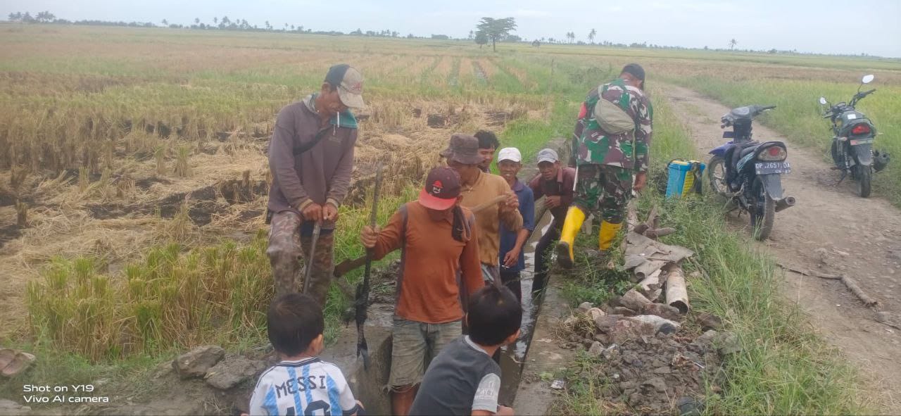 Babinsa Serka Mustaming mengatakan bahwa air merupakan kebutuhan pokok dalam bersawah, untuk itu sebelum mulai garap sawah terlebih dahulu dilaksanakan pembersihan saluran irigasi sehingga nantinya air dari saluran induk dapat dengan lancar mengairi persawahan petani.