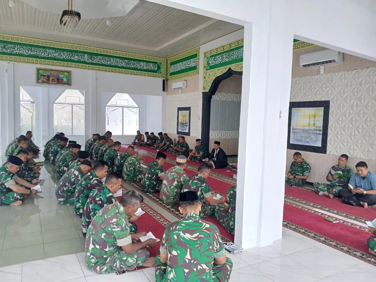 Pidie – Dalam rangka meningkatkan keimanan dan ketakwaan serta mempererat rasa kebersamaan dan solidaritas antar sesama prajurit, personel Kodim 0102/Pidie melaksanakan kegiatan Shalat Dzuhur berjamaah yang dilanjutkan dengan pembacaan Surat Yasin dan doa bersama di Mushola Kodim 0102/Pidie, Selasa (31/03/2026).