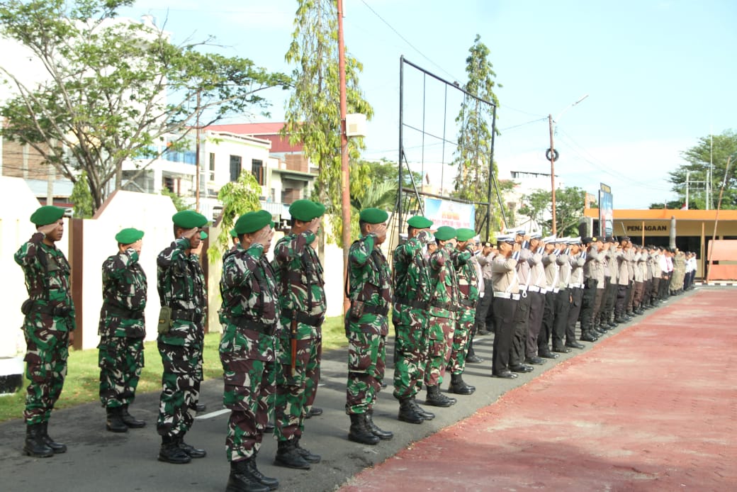 Pinrang_ Personel Kodim 1404/Pinrang mengikuti apel gelar pasukan Operasi Patuh Pallawa tahun 2025 dengan tema “Tertib berlalu-lintas demi terwujudnya Indonesia emas”, bertempat di lapangan apel Polres Pinrang, Senin (14/07/2025).