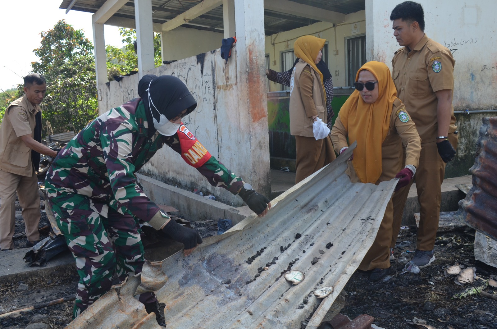 “Sebagai aparat teritorial, kami tidak tinggal diam saja atas musibah yang menimpa masyarakat di wilayah binaan. Kami datang membantu membersihkan puing-puing sisa kebakaran kemarin”, ujar Danramil .