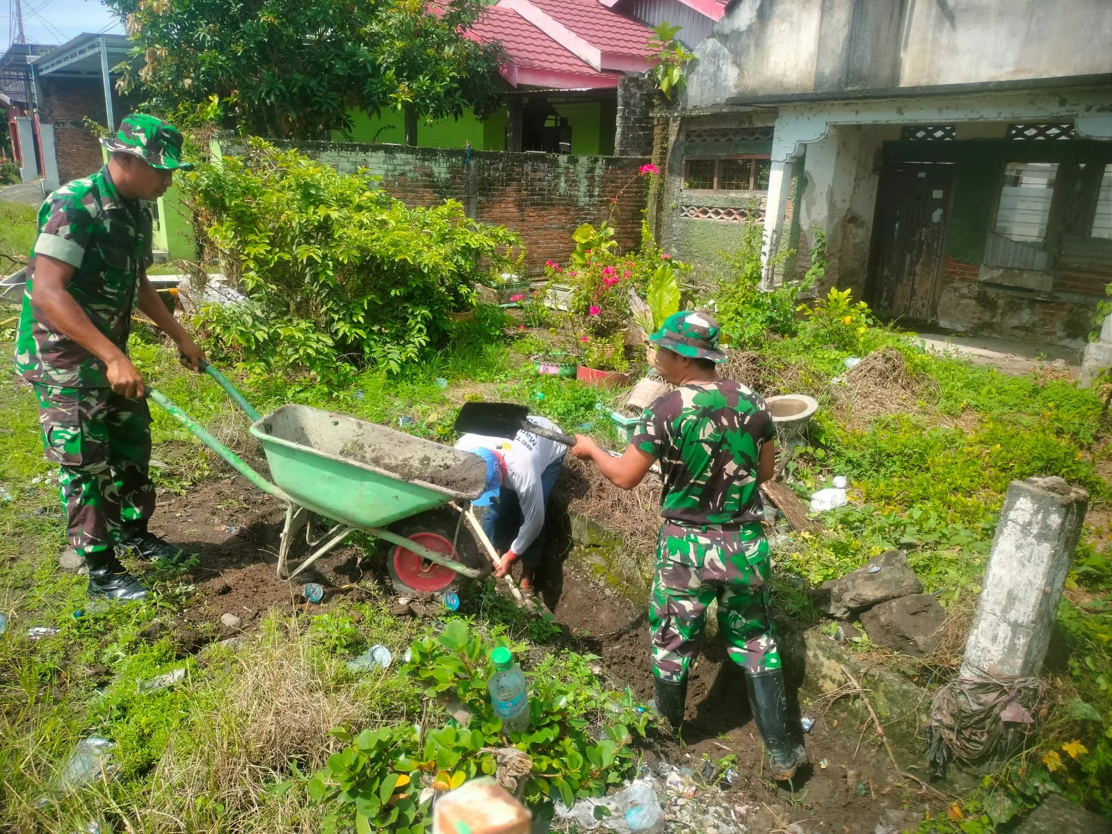 Semangat kebersamaan dan kekompakan antara TNI dan masyarakat terlihat jelas selama pelaksanaan kegiatan berlangsung.