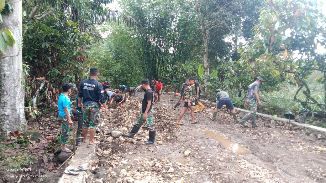 Letda Inf Mustamin menambahkan kegiatan ini merupakan wujud nyata dari manunggalnya TNI dengan rakyat dalam upaya meningkatkan infrastruktur bagi kesejahteraan bersama.