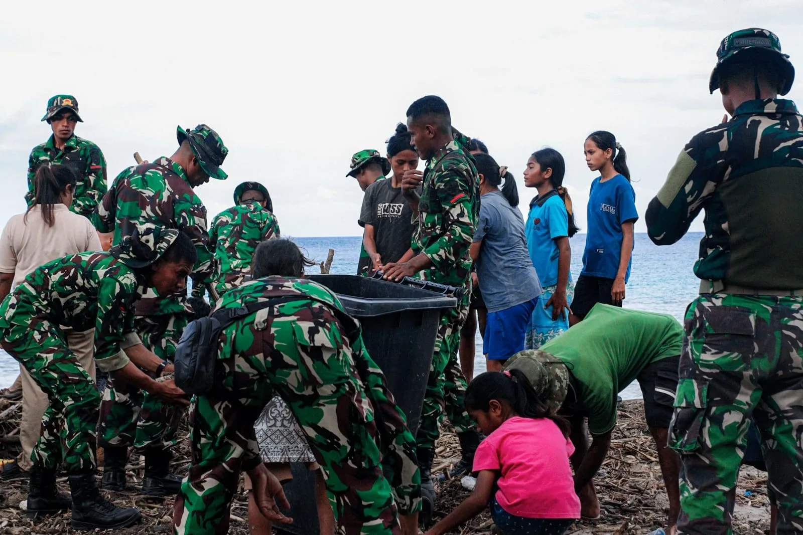 Personel Yonif TP 876/PLT Gelar Aksi Bersih Pantai Maujawa Peringati Hari Peduli Sampah Nasional