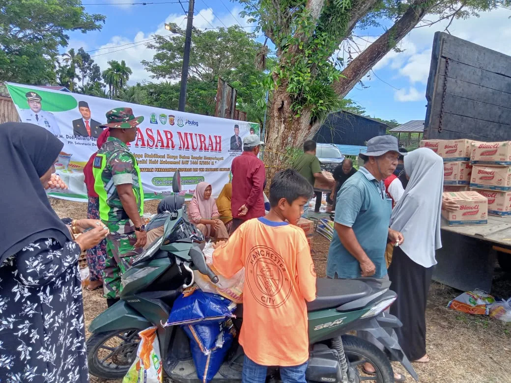 Pasar murah ini menyediakan berbagai kebutuhan pokok dengan harga terjangkau, Kehadiran Personil Koramil 06/Teluk Dalam dalam kegiatan ini bertujuan untuk memastikan kelancaran dan ketertiban selama proses penjualan, sehingga seluruh warga dapat terlayani dengan baik.
