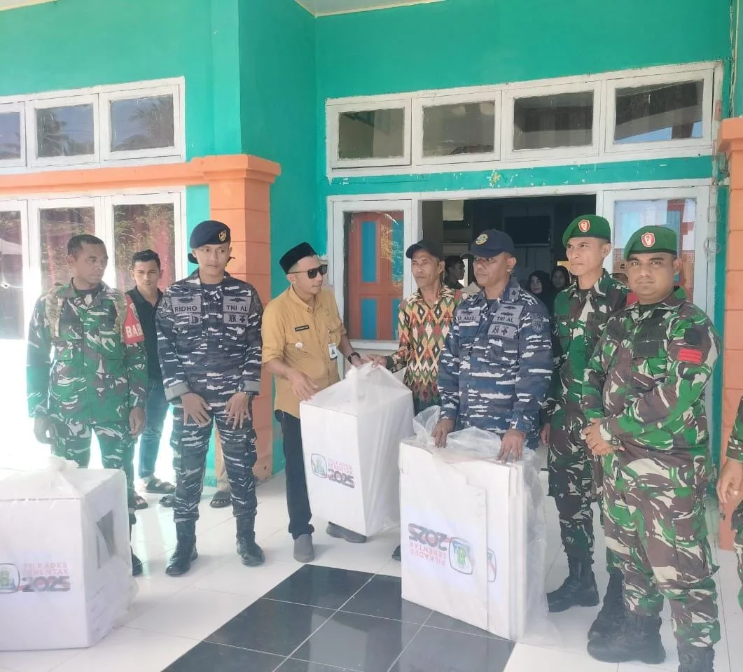 Simeulue – Personil Kodim 0115/Simeulue, Korem 012/Teuku Umar Laksanakan Pengawalan Pengantaran Kotak Suara Pilkades di Kecamatan Teupah Selatan, Kabupaten Simeulue. Jumat (19/12/2025).