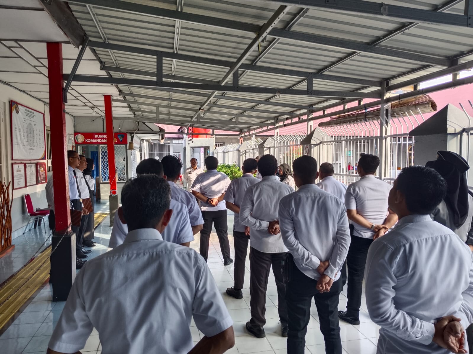 Selayar – Rumah Tahanan Negara (Rutan) Kelas IIB Selayar, Kanwil Ditjenpas Sulsel melaksanakan kegiatan apel pagi yang dipimpin langsung oleh Kepala Rutan Selayar, Basuki Raharjo, pada Senin (14/07). Kegiatan apel ini diikuti oleh seluruh staf dan Calon Pegawai Negeri Sipil (CPNS) Rutan Selayar sebagai bagian dari pembinaan kedisiplinan dan peningkatan etos kerja di lingkungan pemasyarakatan.