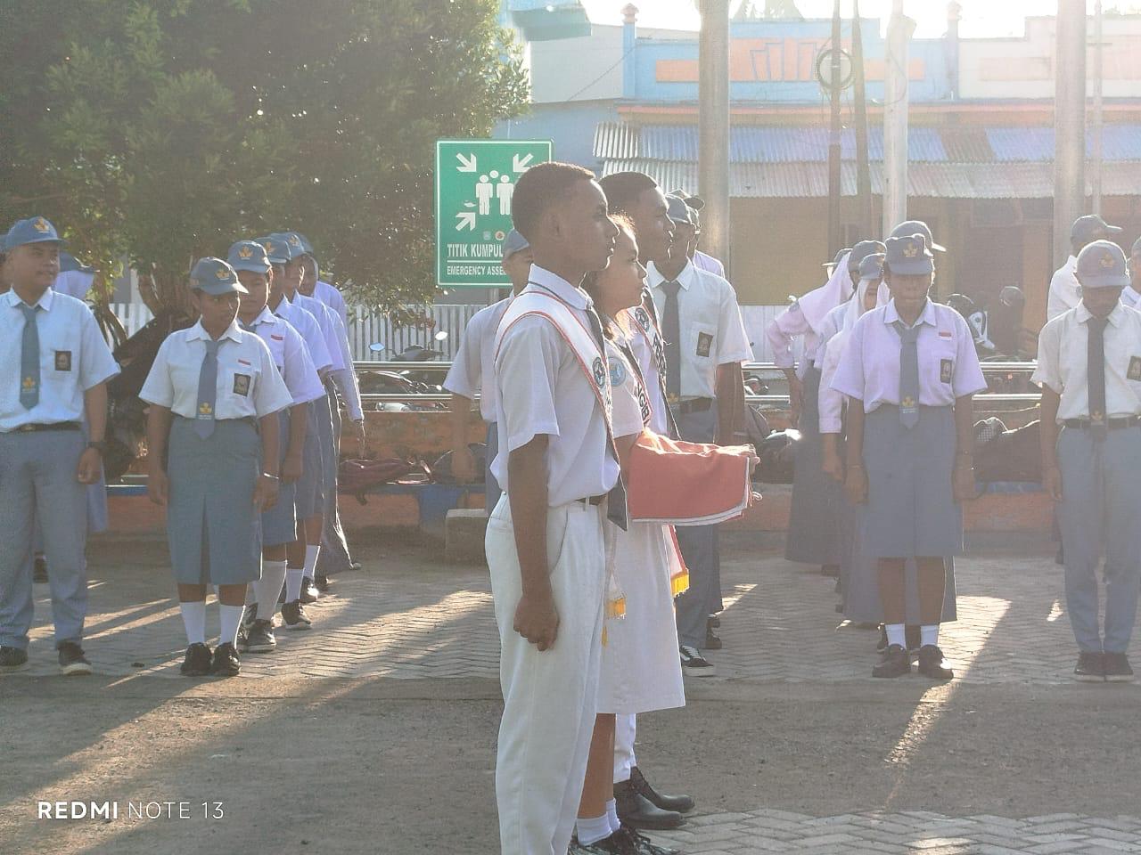 Komandan Kodim 1805/Raja Ampat, Letkol Czi Tri Wibowo Angga Astono memimpin upacara Bendera Mingguan Bulan April TA. 2025 bertempat di Lapangan SMAN 1 Raja Ampat , Distrik Waisai kota kab.Raja Ampat, Senin (28/04/2025).
