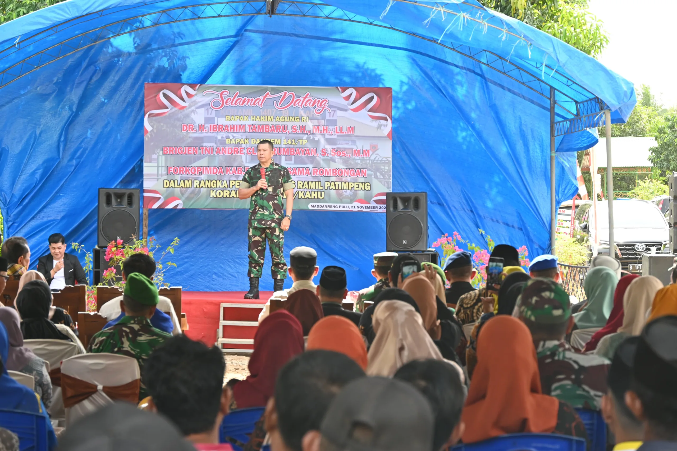 Dalam sambutannya, Danrem 141/Toddopuli Brigjen TNI Andre Clift Rumbayan, S.Sos., M.M. menyampaikan apresiasi atas dukungan masyarakat kepada TNI.