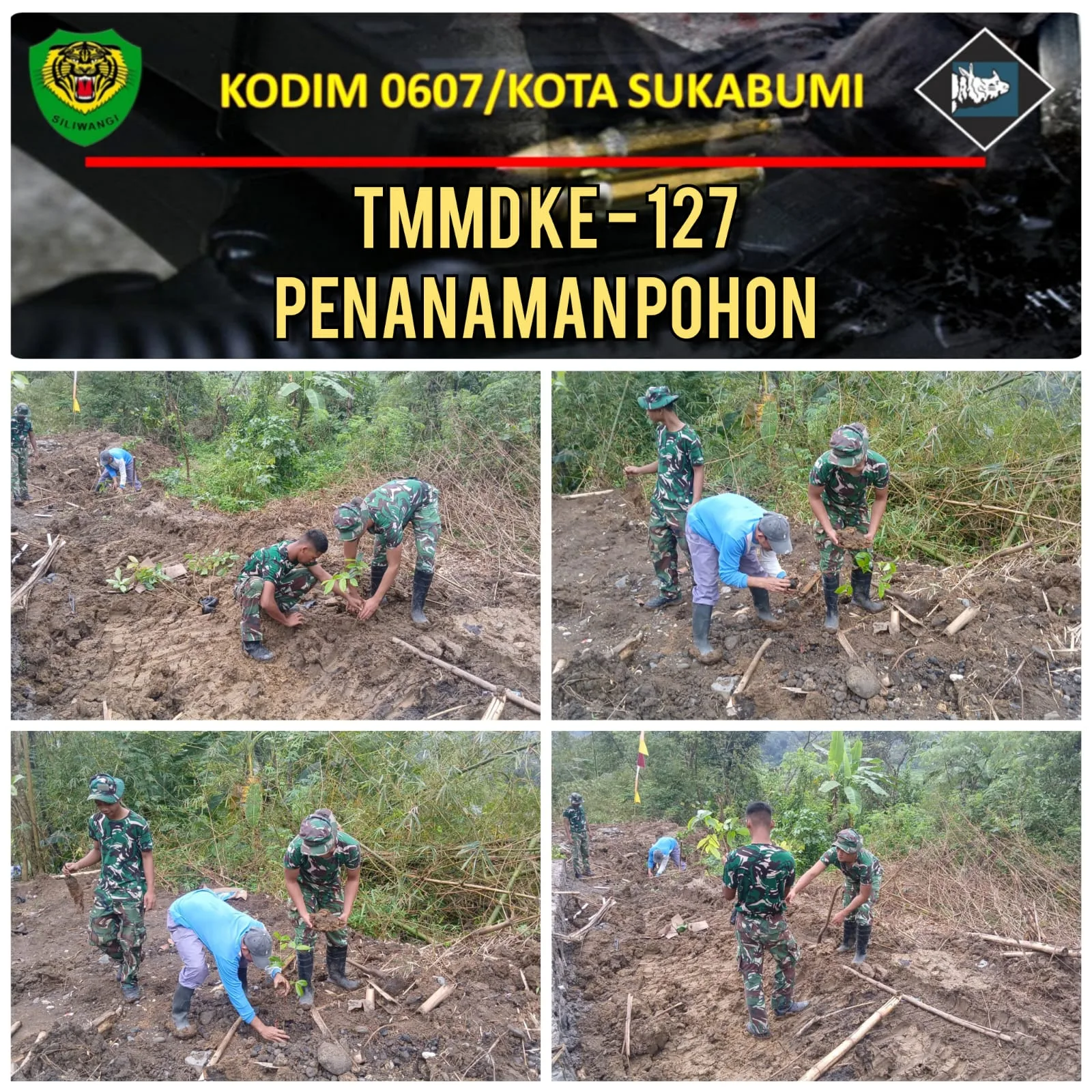 SUKABUMI — Sasaran Program Unggulan Kepala Staf Angkatan Darat (Kasad) dalam kegiatan TNI Manunggal Membangun Desa (TMMD) Ke-127 yang dilaksanakan oleh Kodim 0607/Kota Sukabumi terus berjalan dengan baik. Salah satu sasaran fisik yang menjadi perhatian adalah kegiatan penanaman pohon sebagai upaya pelestarian lingkungan dan pencegahan bencana alam.