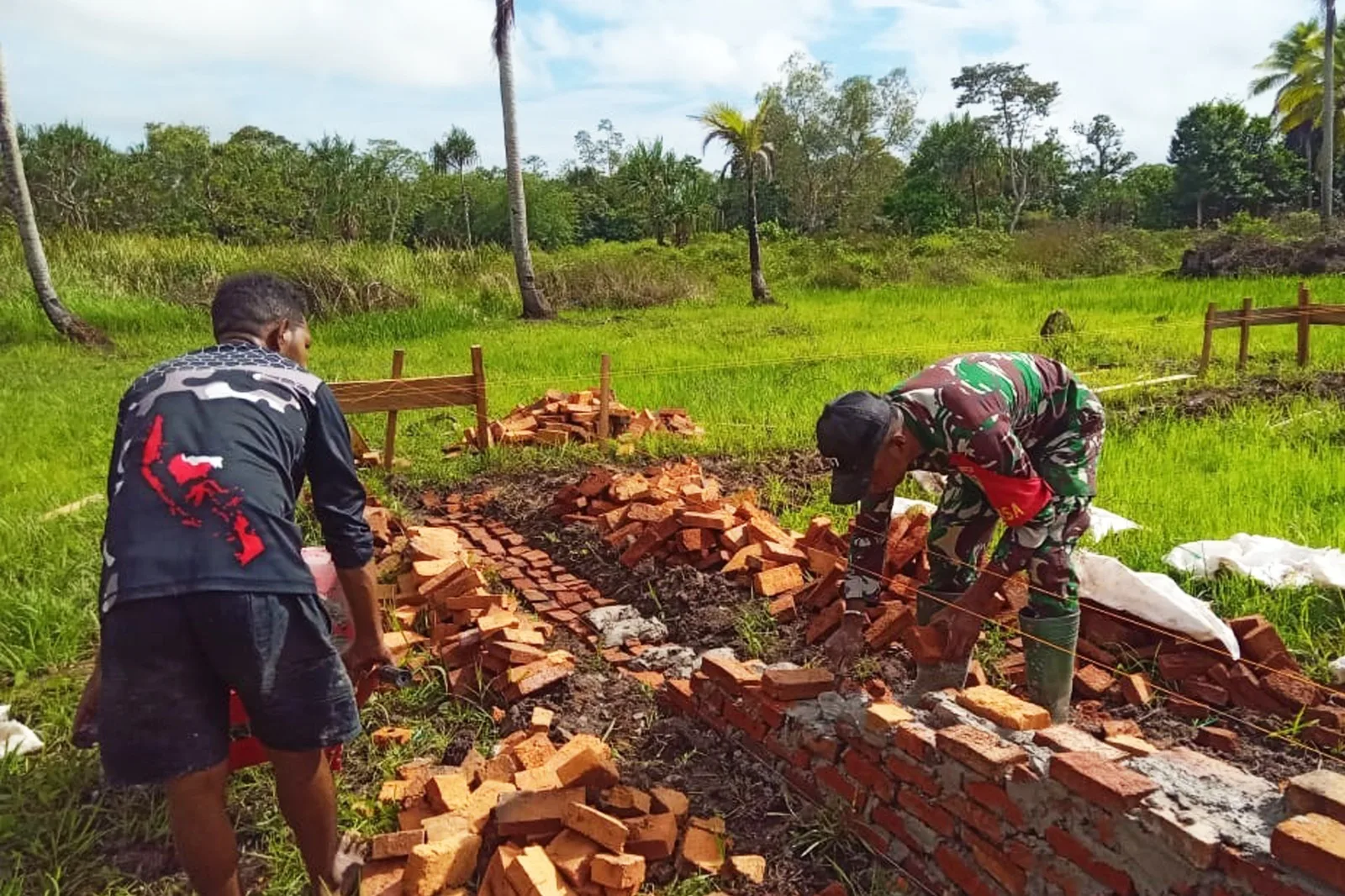 ”Kegiatan kerja bakti tersebut bertujuan membantu meringankan beban keluarga Bapak Felikus Kumuye dalam membangun rumah. Saat ini pembangunannya masih pada tahap pengecoran dan pemasangan batu bata sebagai pondasi”. ujar Kapten Inf Latupono.