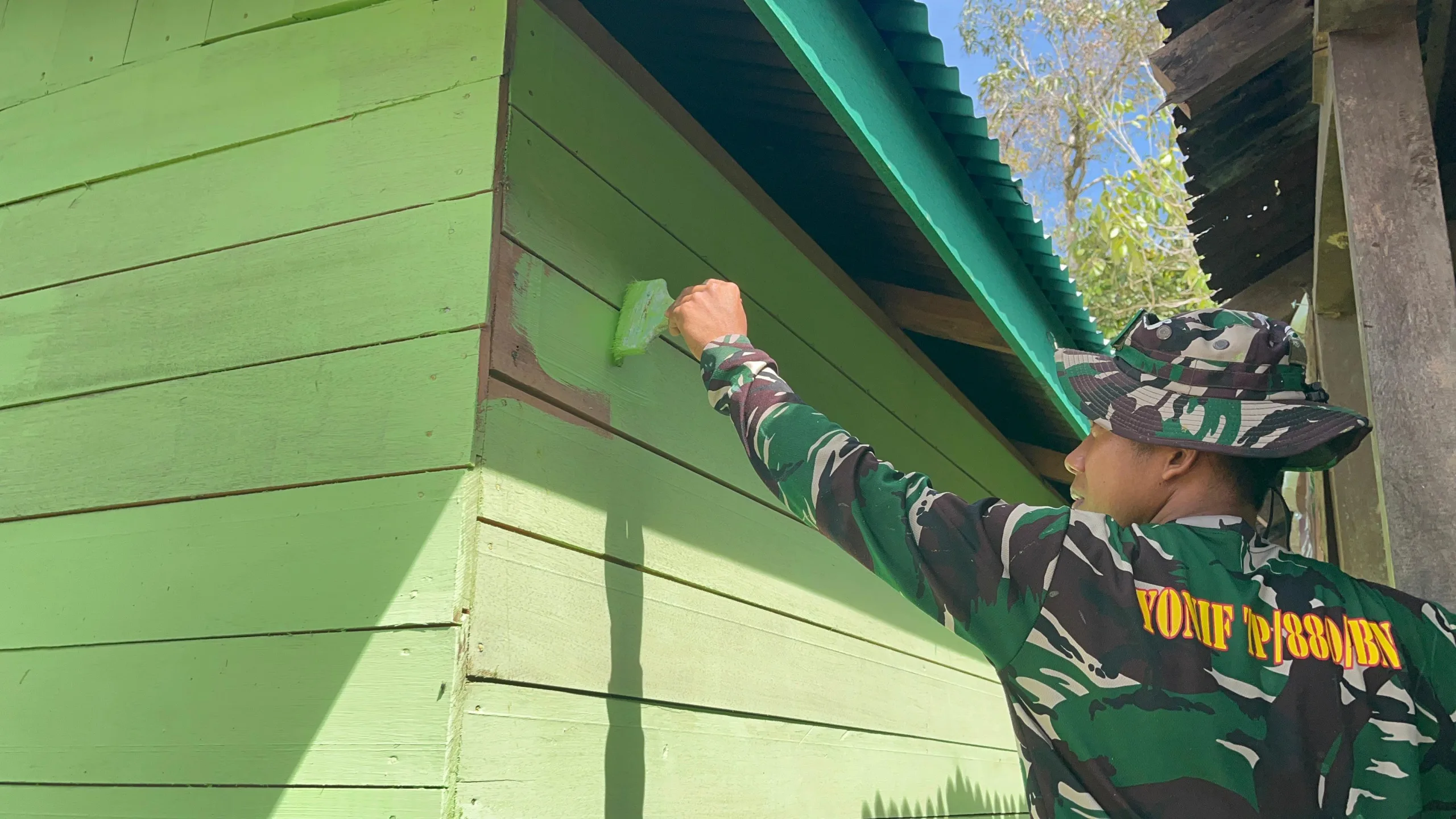 Bulungan – Pengerjaan rumah milik Bapak Binjamin di RT 16 Betiang, Desa Salimbatu, Kecamatan Tanjung Palas Tengah, Kabupaten Bulungan yang menjadi salah satu sasaran program TMMD ke-127 Kodim 0903/Bulungan kini telah memasuki tahap finishing. Anggota Satgas TMMD bersama warga terus bekerja keras untuk mempercepat penyelesaian pembangunan rumah tersebut, Sabtu (07/03).