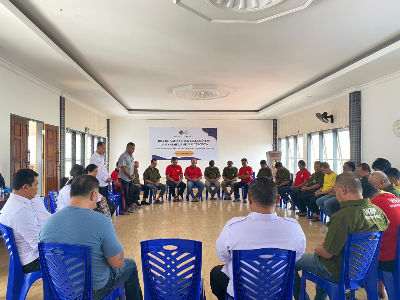 Palu, INFO_PAS- Jajaran Pegawai Rumah Tahanan Negara Kelas IIA Palu bersama beberapa para Warga Binaan Pemasyarakatan (WBP) menggelar Doa Bersama sebagai wujud kepedulian dan keprihatianan atas insiden dan peristiwa yang menimpa tanah air NKRI dalam beberapa hari terakhir, Senin (1/9/2025).